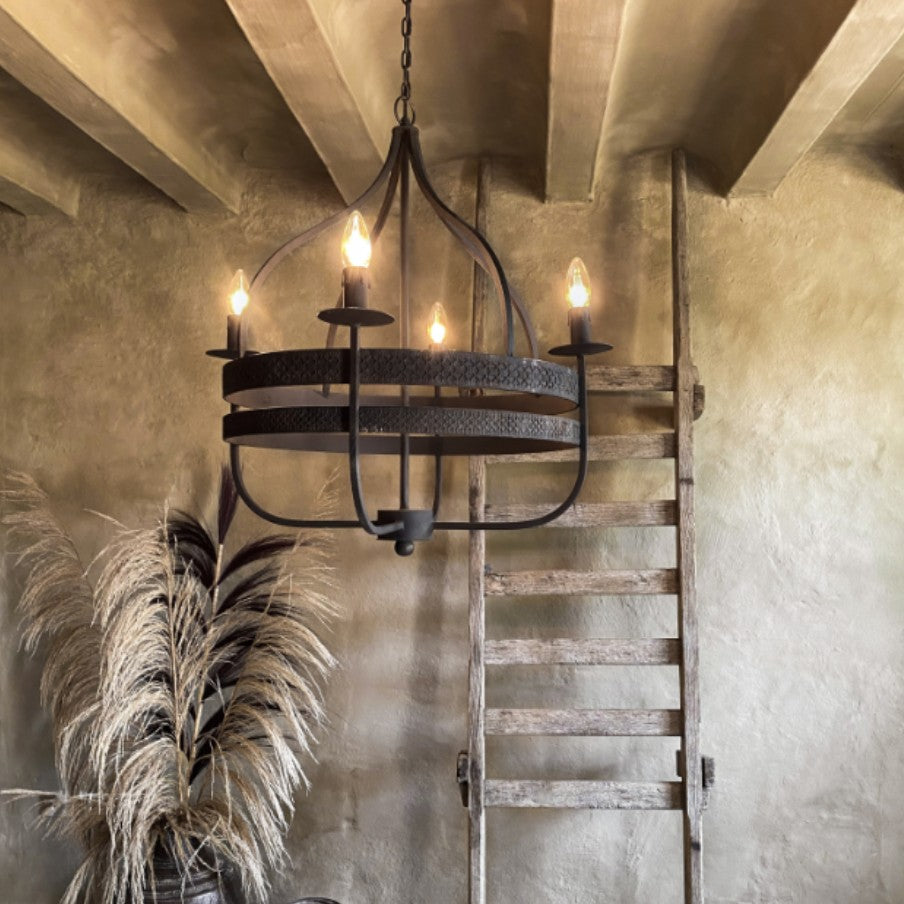 Lámpara colgante Nora de Hoffz. Elegante, discreta y a la vez grácil: ¡así se define esta lámpara de araña Nora! Nora cuenta con cuatro luces y está fabricada en hierro con un acabado marrón oscuro.