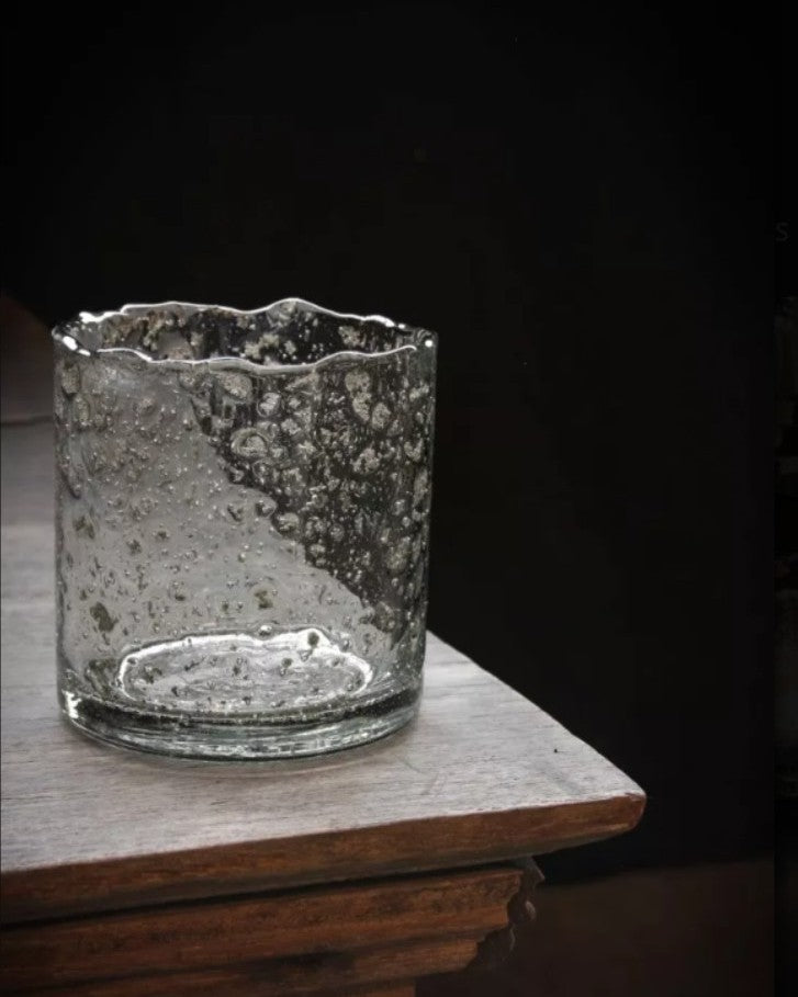Windlicht Bubbels Medium de Hoffz. Estos faroles se integran a la perfección en cualquier interior y crean un hermoso y evocador reflejo de luz. El método especial de soplado de vidrio crea pequeñas burbujas en el vidrio, creando una apariencia única. Los faroles están disponibles en tres tamaños diferentes.