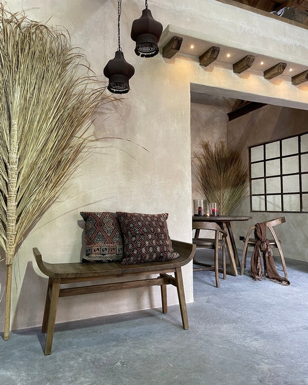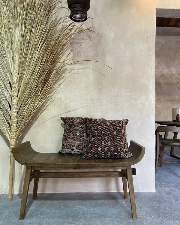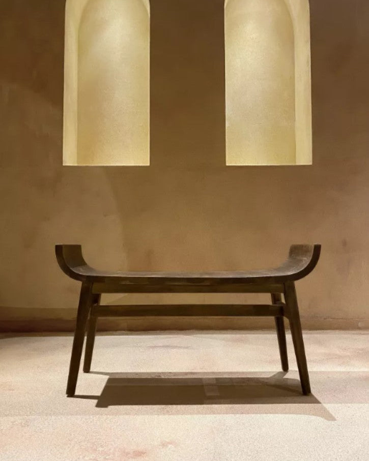 The Fez bench by Hoffz. The Fez bench is a nod to the Fez stool: a similar design, but with a playful twist thanks to its curved sides. It looks great in a hallway, at the end of a bed, or at a dining table, like the Yaro oval.