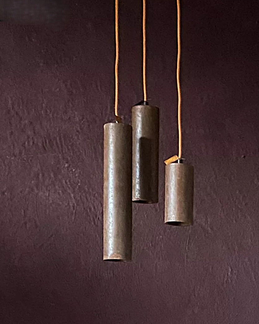 Gyan pendant lamp by Hoffz, large. HThe Gyan lamp adds an extra dimension to your room with its three different sizes. Its simple, sleek design and distressed look make it a perfect fit for any interior. I.v.m. heat only suitable for LED lamps.