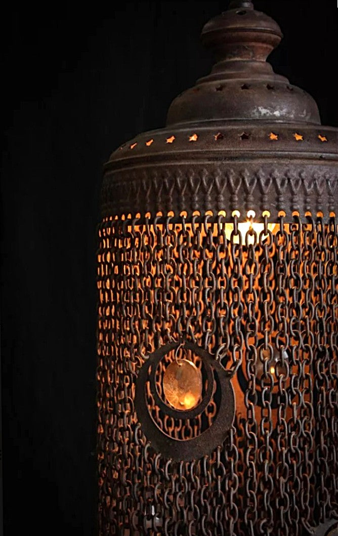 Dimensions: approx. H 65 x D 21 cm Material: weathered iron + brown finished glass beads