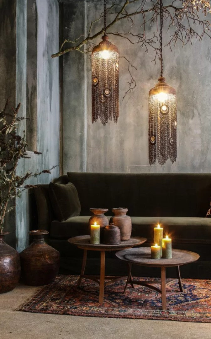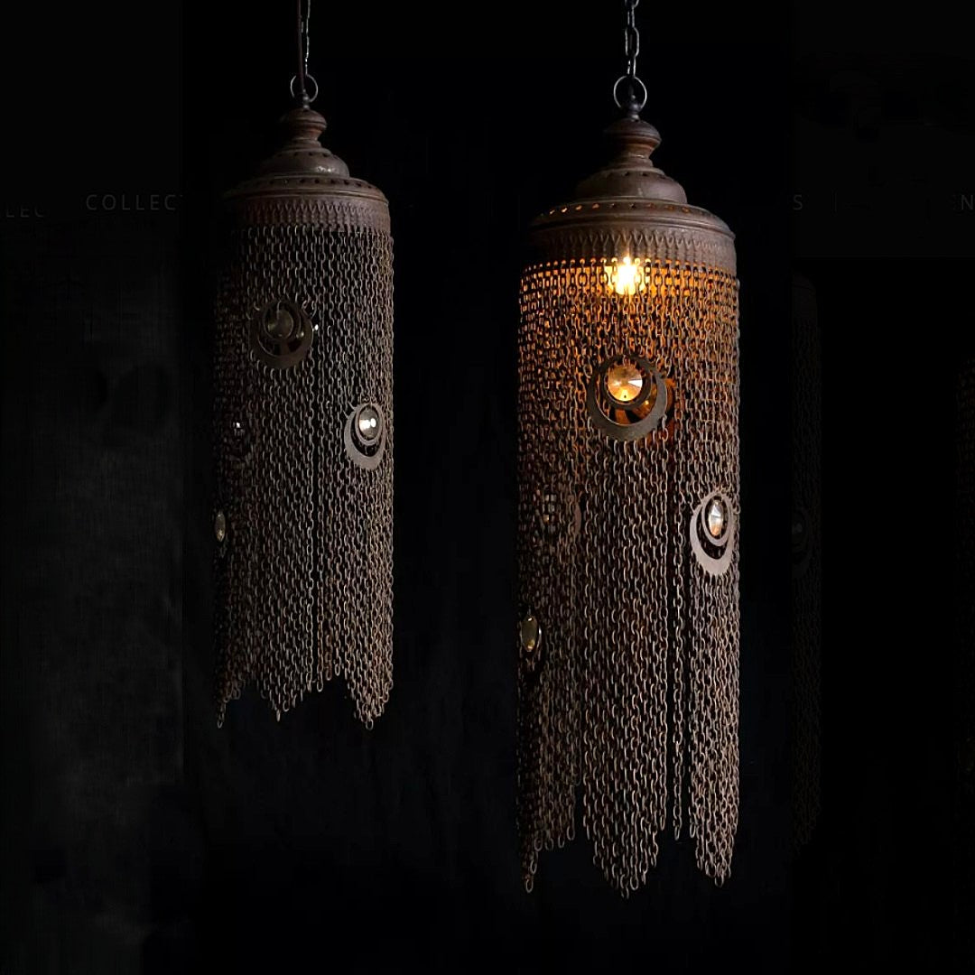 Pendant lamp Sasha by Hoffz. With its many chains, delicate shade, and light brown glass icicles, Sasha is a true feast for the eyes. This chandelier adds a beautiful, warm touch to your interior.