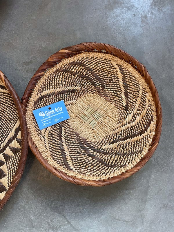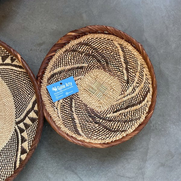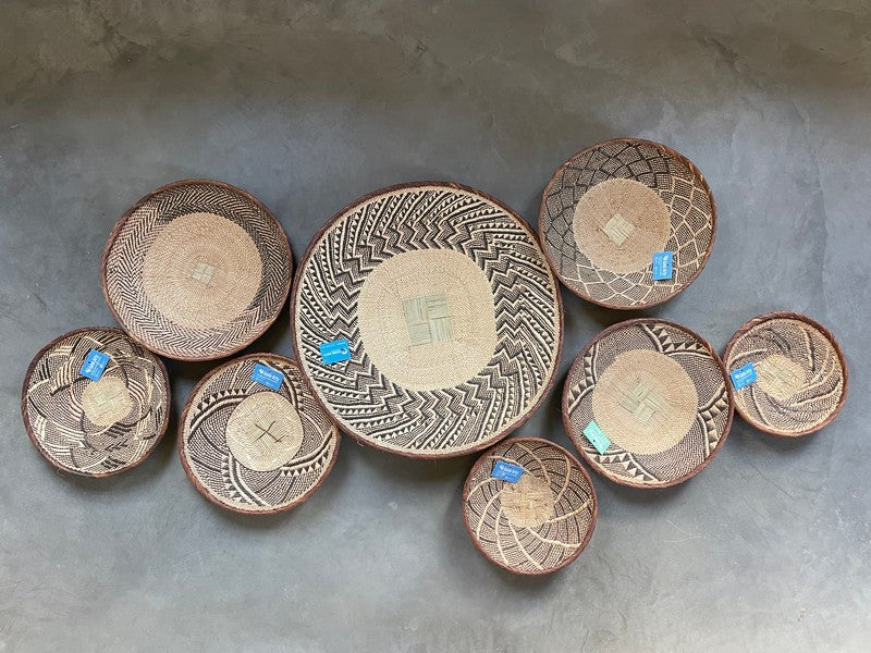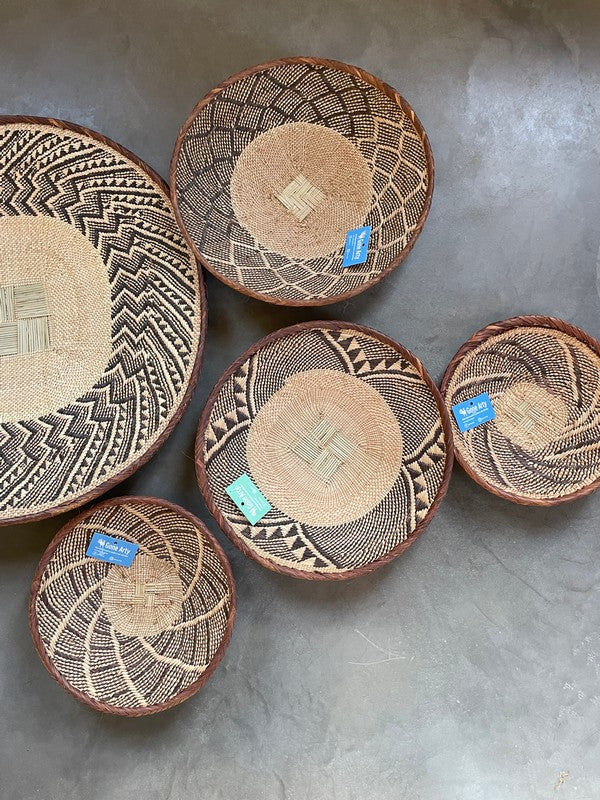 The baskets are made from locally harvested materials, such as wild grasses and Ilala palm fronds, which are painted with tree bark. Bring a traditional African feel into your home and hang the baskets grouped together on your wall for a beautiful, natural look.